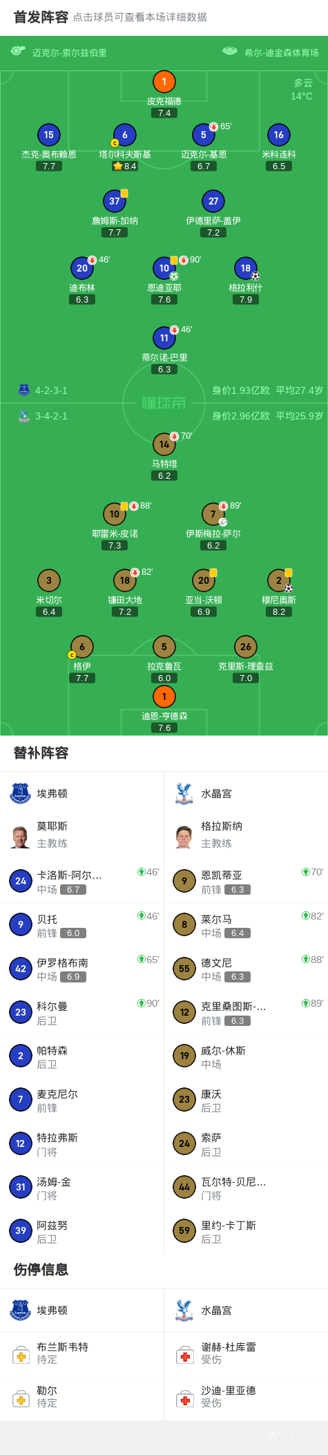 埃弗顿2-1逆转送水晶宫赛季首败,格拉利什补时绝杀